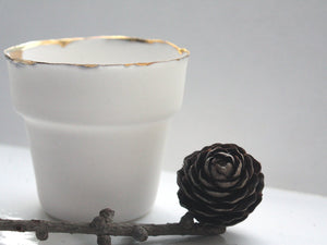 White and gold finish pot. Small English fine bone china planter with real gold rim - outdoor decor  - Regular price