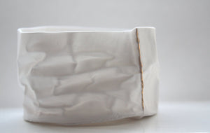 White with gold vessel. Crumpled paper-looking vessel made out of fine bone china with real gold  - Regular price