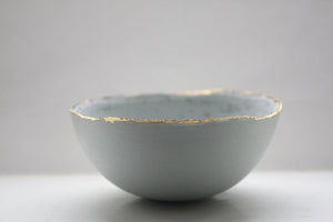 Large Blue porcelain bowl. Stoneware porcelain bowl in duck egg blue with gold rims.  - Regular price