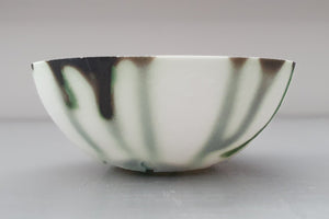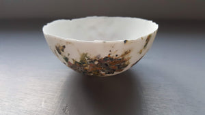 Small decorative bowl. Decorative stoneware English fine bone china small bowl with green and black highlights.