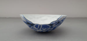 Ring dish. Stoneware English fine bone china vessel with a unique finish. Organic pattern in blue white and black.