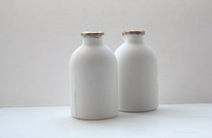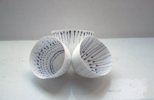 Small snow white vessel with black embossed dot made from English fine bone china - one of a kind