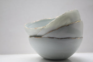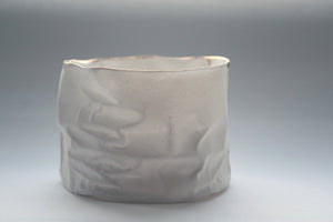 White with gold vessel. Crumpled paper-looking vessel made out of fine bone china with real gold