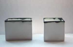 Pure white cube set made from fine bone china and burnt effect rims - geometric decor