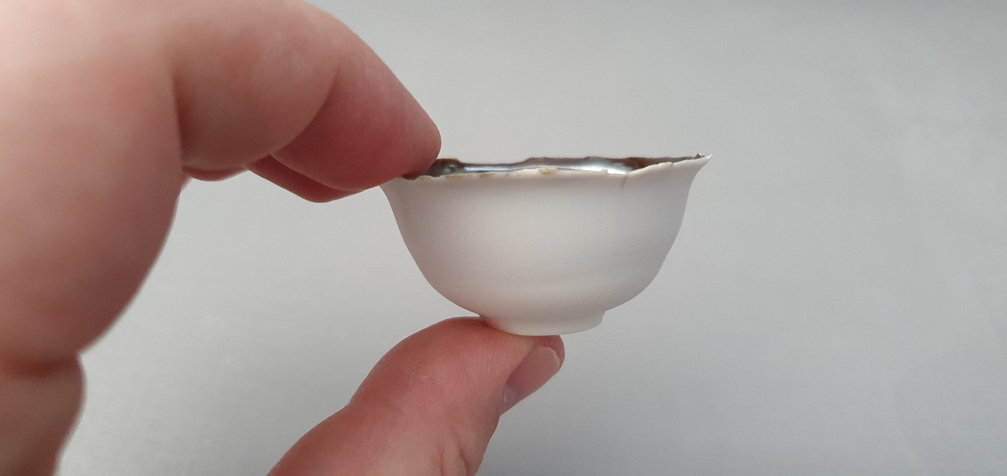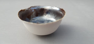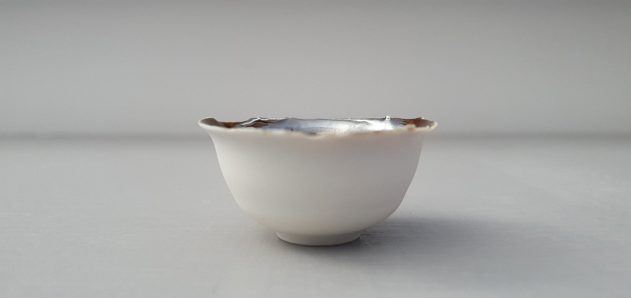 Miniature white vessel with dark brown glaze interior made from English fine bone china - limited edition